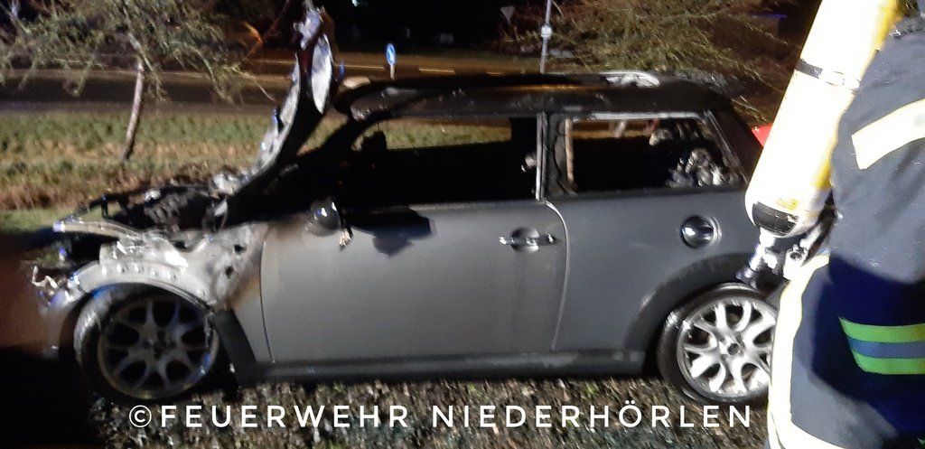 Bereits vor Eintreffen an der Einsatzstelle konnte ein PKW in Vollbrand erkannt werden. Zwei Einsatzkräfte unter Atemschutz begangen mit den Löscharbeiten. Das Feuer war relativ schnell unter Kontrolle gebracht.