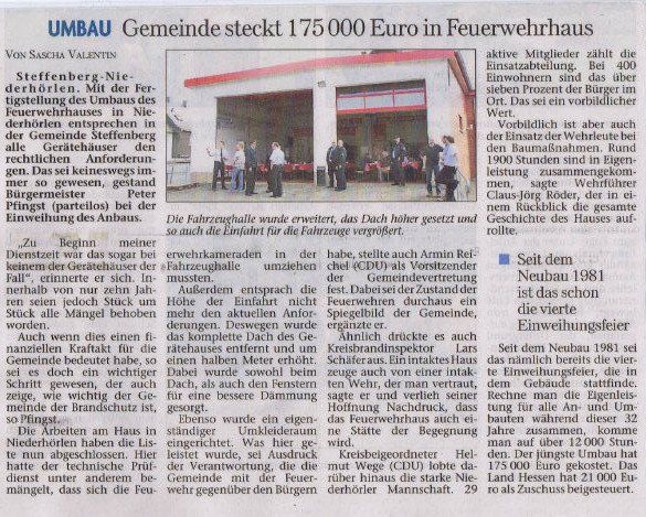 Die beiden Gemeindebrandinspektoren Thilo Achenbach (v.r.) und Uwe Lichtblau sowie Bürgermeister Peter Pfingst (4.v.r.) freuen sich über die neue Führungsriege der Feuerwehr Niederhörlen: (v.l.) Markus Weigel, Robert Gürtler, Nicole Metzler, Andreas Strobel, Fabian Strobel, Daniel Theis, Sven Löber, Claus-Jörg Röder, Martina Röder und Björn Reinberger.